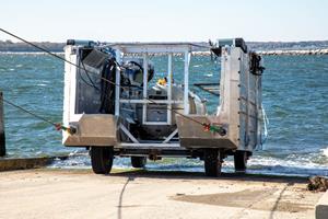 Following that successful demonstration, Pharos and the Snakehead LDUUVs were tested at the Navy’s Narragansett Bay Test Facility in Newport. Pharos, with the Snakehead LDUUV embarked in its cradle, was lowered down and pulled up a ramp to simulate disembarking and embarking the system in the well deck of an amphibious ship. The simulation ensured that the 22,000-pound pull was within the existing capabilities of an LPD as operating in the Navy fleet.